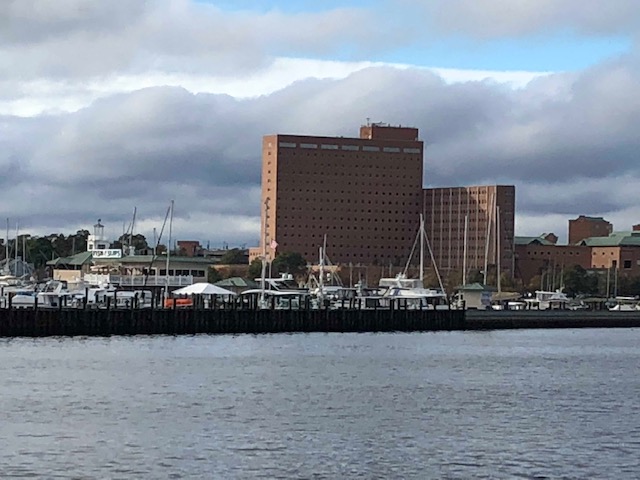 Monday evening, November 5. We’d had an enjoyable afternoon with our friends on C’est la Vie, walking around Olde Town Portsmouth and riding the ferry to Norfolk. We made lunch out of appetizers at a couple of tap rooms, and otherwise gotten in some of the exercise that can be hard to get when cruising. Neal made a pot of gumbo before we left (in my experience, boaters are notoriously bad cooks, but C’est la Vie is an exception), and were sharing it with us.